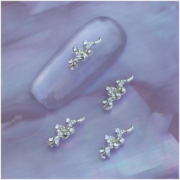Strasszköves körömdísz, ezüst színű kígyó forma, crystal színű strasszkövekkel. Egyedi körömdíszítő, kreatívan kombinálható különleges színvilágú strasszköveinkkel, szórógyöngyeinkkel. Glue gél segítségével tartósan a körömfelületre rögzíthető.