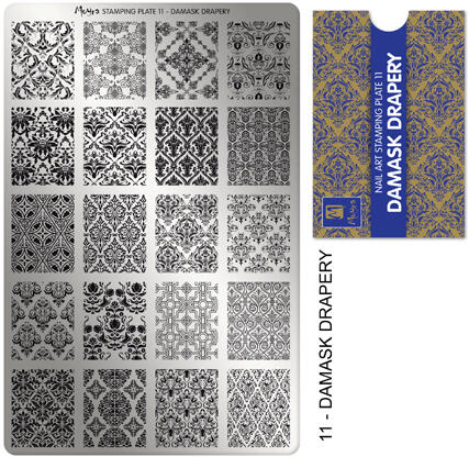 A Damask Drapery-11 professzionális minőségű, nagyméretű körömnyomda-lemez segítségével percek alatt különleges körmöket készíthetsz akár otthon, akár a szalonodban. Könnyen használható nyomdalemez, garantált siker. Használati útmutatót lentebb görgetve találsz!