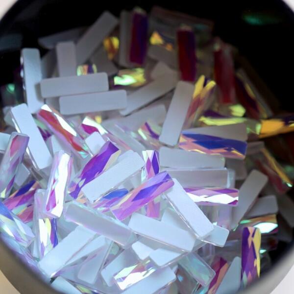 Strassz formakő Ice körömdísz hasáb formában, különleges jeges színeffekttel. Flatback, no hotfix típusú üvegforma. Glue gél segítségével tartósan a körömre ragasztható, strasszköveinkkel, szórógyöngyeinkkel különleges kombinációkat alkothatunk.