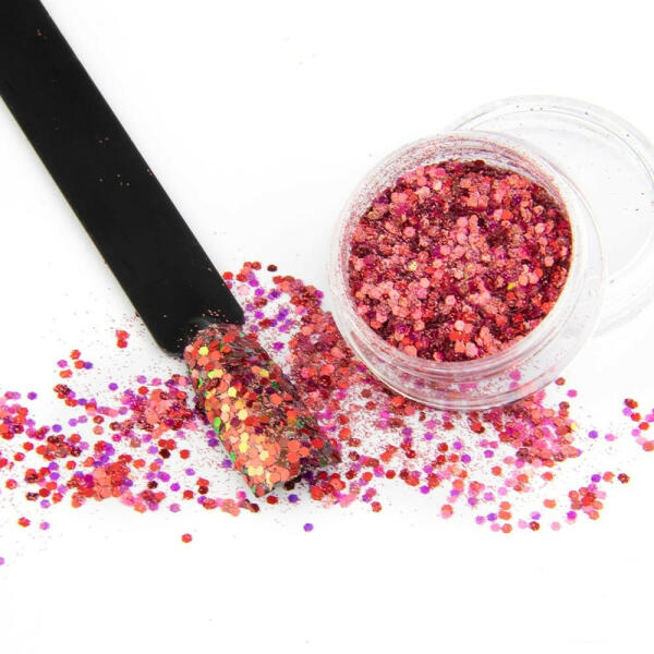 Az After Party Effect Nr. 17 finom pollen tökéletes aránya nagy látható részecskékkel, amelyek fényvisszaverő tükrökre emlékeztetnek. Gyönyörködj a tűz-vörös színében. Eljött az After Party ideje!Egy csillogó flitter kollekció, amely minden "szarka" figyelmét felkelti!Játssz az új effect por színeivel és szerkezetével!Emeld ki körmeidet ezzel a fényes stílussal!Muta