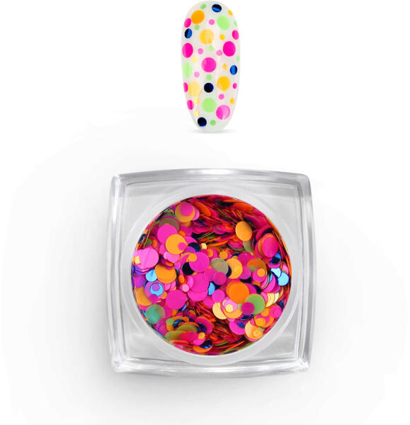 Színes körömdíszítő pöttyök! A tégelyekben különböző színű és méretű korongokat találsz, így kedved szerint valósíthatsz meg kreatív manikűröket! vAlkoss vidám hangulatú körmöket különböző színű és méretű Artfetti mixeinkkel!