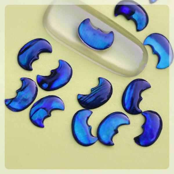 Kagyló körömdísz igazi kagylóból. Vékony de merev kagyló körömdísz kékes árnyalatban, hold formában. Minden darab eltérő mintázattal. Legyél Te is közel a természethez kagylóból készült díszítőinkkel!