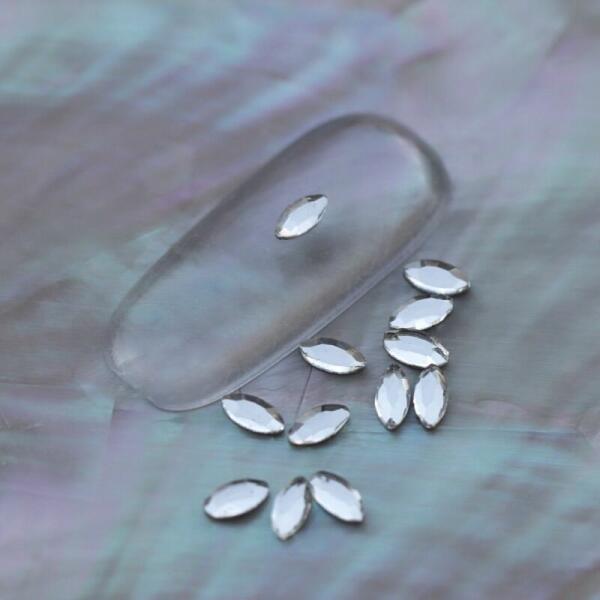 Strassz formakő körömdísz crystal színben mini levélformában. A népszerű strassz formák egyike közkedvelt színjátszó színvilágával különleges díszítő kombinációkat alkothatunk vele. Kíválóan alkalmazható strasszköveinkkel, szórógyöngyeinkkel. Flatback no hotfix típusú, ragasztható üvegforma.