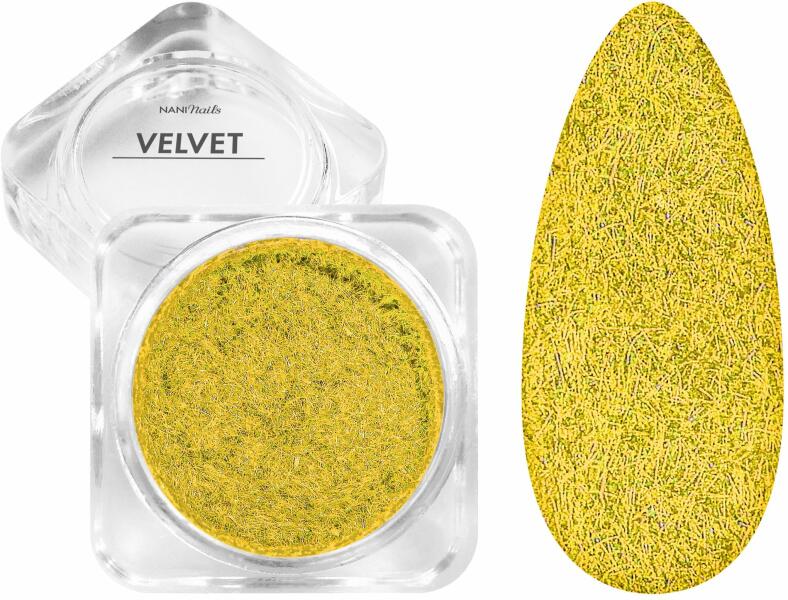 A Velvet Pigment bársonypor egy nagyon specifikus dekoráció, amelyet nem köttetett színalapra vagy végső felületre használnak a körmök bolyhos/fluffy hatásáért. Ez a díszítés utolsó szakasza, amelyre a finish-t már nem alkalmazzák. 1,5 g pigment van a csomagban. Az üvegcse mérete 3x3 cm.
