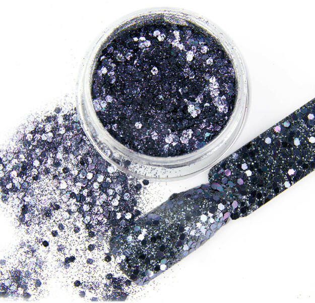 Apró textúrájú, de a csillámnál nagyobb szemcséjű flitteres csillámporok 38 színben.