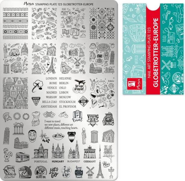 Ciao Bella, indulhat az utazás! Repülj el velünk a népszerű európai nagyvárosok egyikébe a csodálatos mintákat rejtő nyomdalemezünk segítségével! Készülj a nyaralásra és díszítsd körmeidet az úti célnak megfelelő mintákkal!