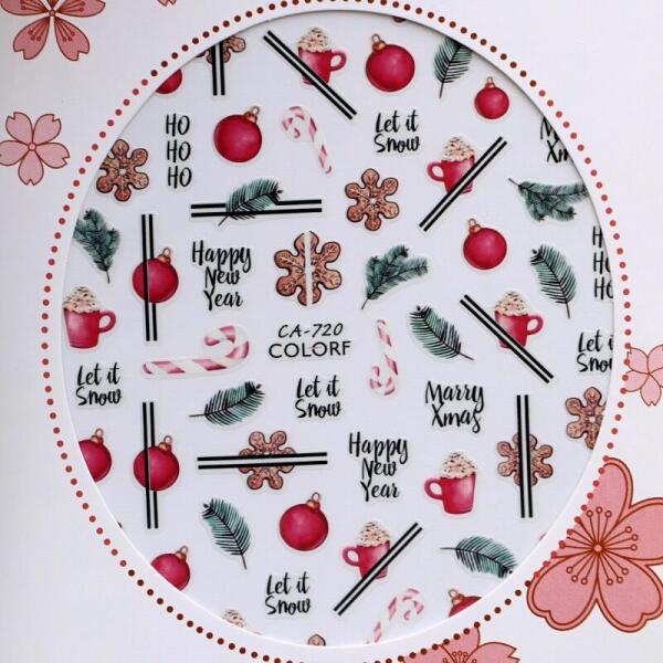 Karácsonyi körömmatrica 3D, színes mintákkal 3D-s kivitelben. Ragasztó réteggel ellátott matrica, önmagában is kitűnő dekoráció.