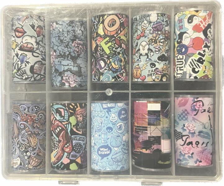 A műköröm építéshez használt transzferfólia gyors és egyszerű módot kínál a kreatív dizájnok létrehozására. Ez a speciális fólia könnyen alkalmazható, és széles választékban elérhető, ezáltal egyedivé varázsolja a vendégeid körmeit.