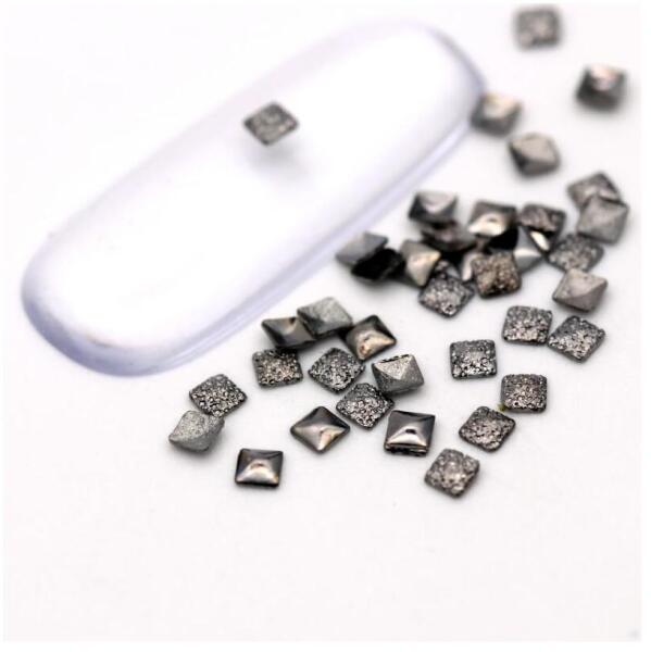 2mm-es mini négyzet szegecs, fekete színben. Csillámos és sima felszínnel, vegyesen. 40db/cs.