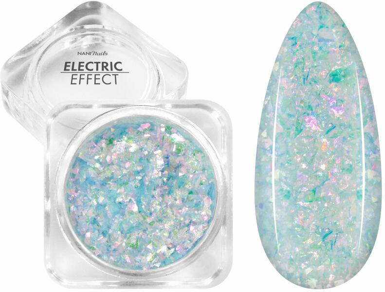 A NANI Electric Effect polírozó pigment egy apró szemcséjű fémes púder, amely elektromos hatást kelt a körmökön. Próbálja ki a legújabb Nail Art trendet! A pigment praktikus, kb. 4 cm átmérőjű dobozban van. A pigment átlátszó színe lehetővé teszi bármilyen színű gél lakkra való felvitelét. 0,2 g pigment van a csomagban. Használata zselés vagy porcelán körömre:1.