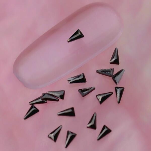 Szegecs körömdísz grafit színű hosszúszárú háromszög. . Extrém körömdekorációkhoz ajánljuk. Nagyszerűen kombinálható grafit színű szegecseinkkel, fém, mágnesezhető szórógyöngyeinkkel.