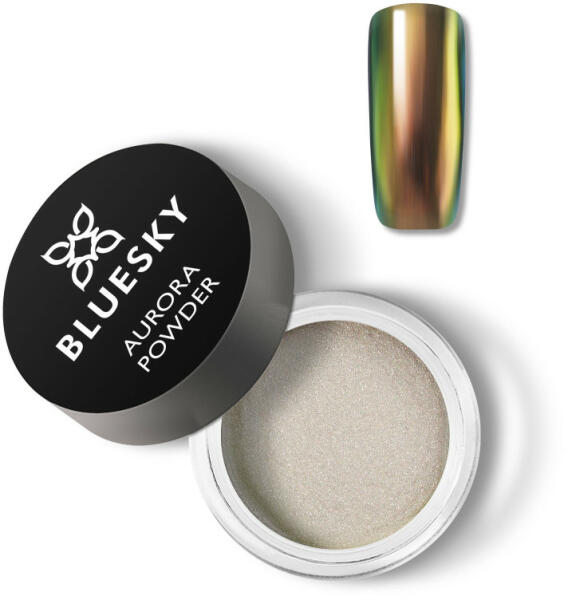 Arany árnyalatú BLUESKY Aurora Powder könnyen felvihető, fényes, sarki fény hatású díszítópor.