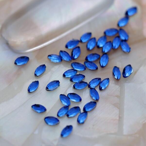 Akril forma zabszem alakban Sapphire kék színben. 3mm-es méret. Kevésbé szabályosan vágott, mint üvegből készült formáink, viszont ár-érték arány kedvezőbb.
