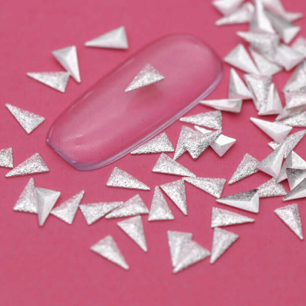 5*3mm-es ezüst háromszög körömdísz. Csillámos felületű. Dekoratív díszítőelem. 30db/cs.