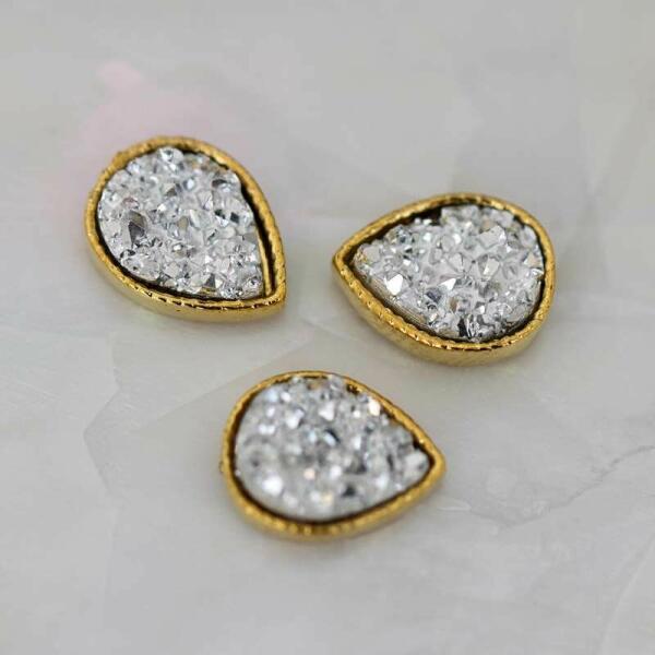 Zodiac óriás körömdekoráció arany színű cseppforma keretben crystal színű ásványi hatású felülettel. Enyhén ívelt aljú így könnyebben fekszik fel a köröm felületére. Glue gél segítségével tartósan fixálható.