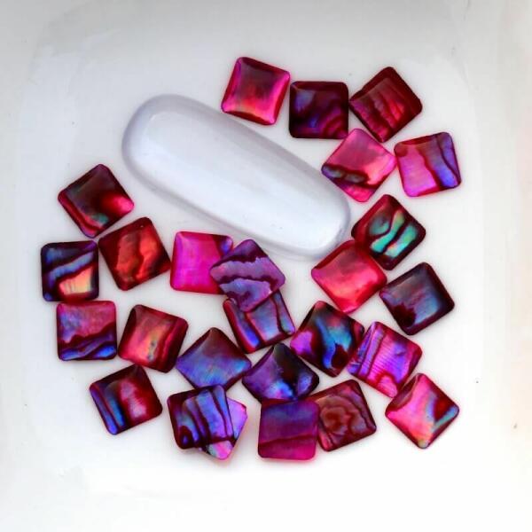 Vékony de merev kagyló körömdísz kékes árnyalatban. Négyzet forma. Minden darab eltérő mintázattal. 6db/cs.