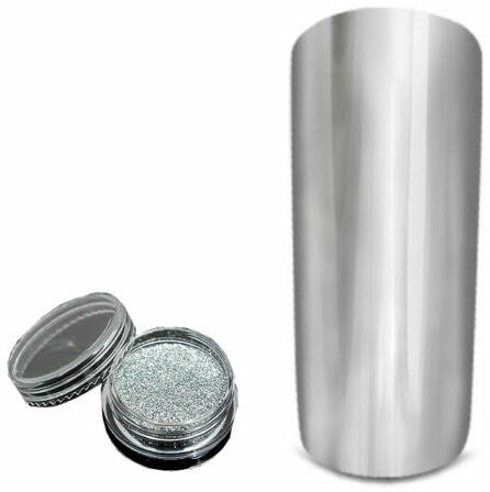 Chrome Mirror Powder Extra finomságának köszönhetően nagyon szép fémes hatás érhető el vele. A legújabb körömdíszítési trendnek megfelelően, hódít a krómos hatás! Varázslatosan tükröződő felület, fémesen csillogó felszín! Már nagyon kevés mennyiségű Mirror Powder felhasználásával igazán tiszta és intenzív csillogás érhető el. Használata:Egyfázisú géll
