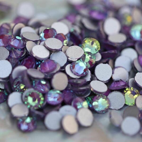 Zodiac strasszkő ss20 Glossy Grape, sárgás-lilás színvilágú strassz mely oldalnézetből lila, felülről pedig sárgás fényben pompázik. Glue gél használatával egyszerűen rögzíthető. Flatback no hotfix típusú ragasztható strasszkő.