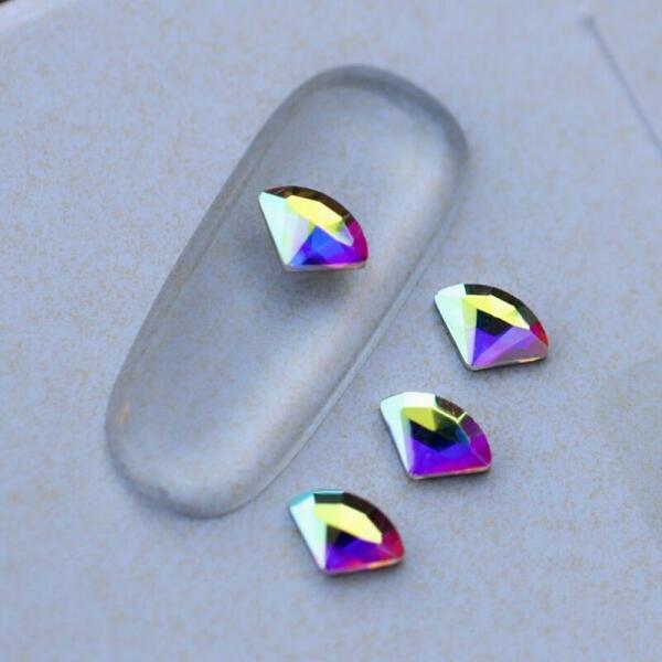 Strassz formakő körömdísz 6*4mm, gyémánt formában, színjátszó színben. Laposabb, mint az eddigi hasonló formák így kevésbé emelkedik ki a köröm felületéről. Flatback, no hotfix típusú üvegforma. Glue gél segítségével tartósan a körömre ragasztható, strasszkövekkel, szórógyöngyeinkkel kombinálva különleges dekorációkat alkothatunk.