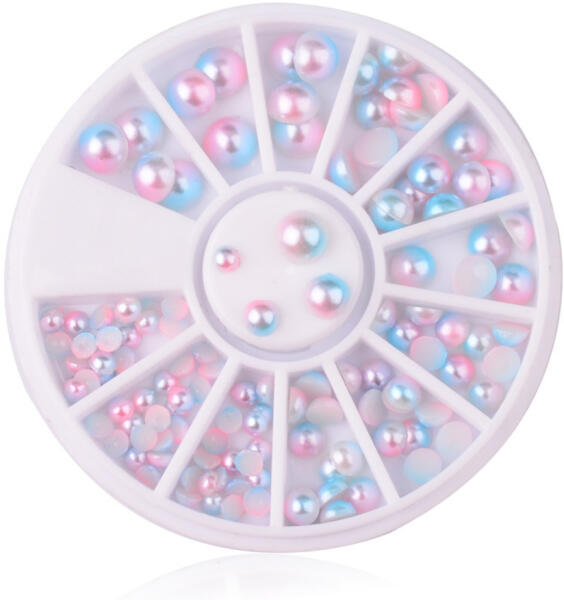 Félgömb gyöngy szett irizáló rózsaszín árnyalatbanMéret: 3/4/5/6 mmMennyiség: 120dbKülönböző méretű, gyöngyház fényű rózsaszínes félgömb gyöngyöket tartalmazó szett. Az esküvő szezon elengedhetetlen kelléke! Használd őket tipragasztóban, vagy ragasztó zselében rögzítve. Igény szerint fedd őket nagyon vékonyan fényzselével, hogy megakadályozd az esetleges