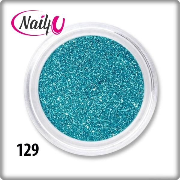 Csillámpor 129. , türkiz színben. A körömdíszek között a leginkább népszerű körömdíszítő anyag. Töretlen népszerűsége a kedvező ár mellett, a széleskörű felhasználhatóságnak is köszönhető. Használhatjuk szinte bármilyen körmön. Tehetjük felületre, beépíthetjük, vagy akár az építő anyaghoz is keverhetjük. A végeredmény; káprázatos csillogás, egyszer