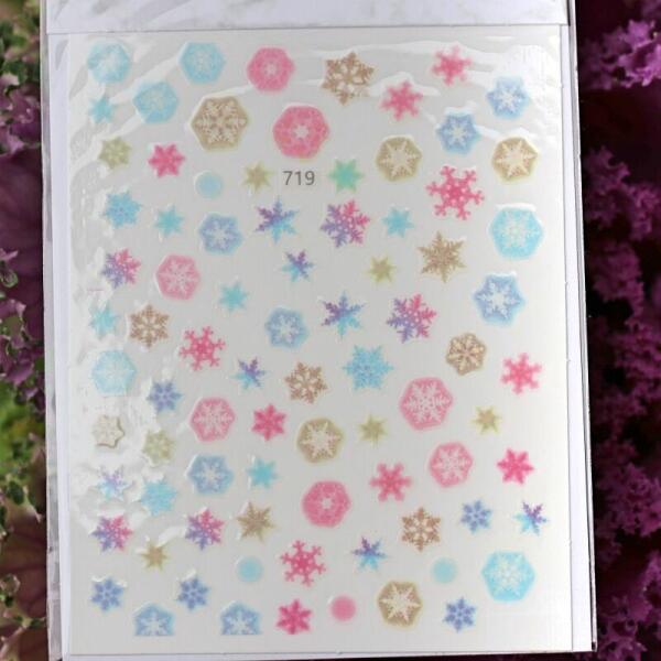 Karácsonyi körömmatrica 3D, téli hópelyhek 3D-s kivitelben. Színes körömminták a praktikus, egyszerű körömdíszítésért. Ragasztó réteggel ellátott matrica, önmagában is kitűnő dekoráció.