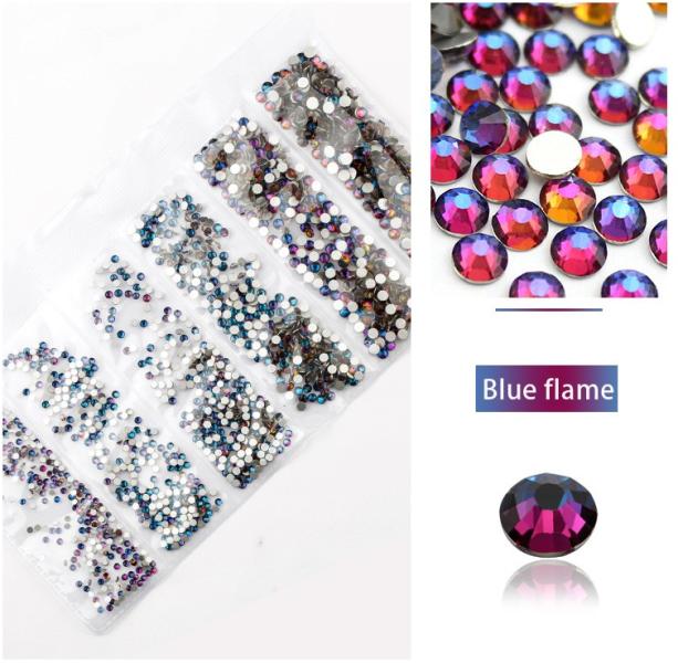 Különleges strassz kristály válogatás, ezüst alappal, amely normál nem ragasztós felületű. 1680 darabos kristály strassz készlet 6 féle méretben P30 - Blue flame használata: A köröm felületét a szokásos módon készítsük elő, majd alapozzuk le egy réteg alap gél lakkal. Köttetés után fessük a megfelelő színűre, ez lesz az alap. A szín köttetését követően, spec