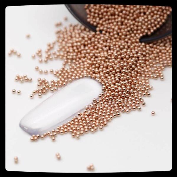 Fém szórógyöngy Rose Gold színben, 1.0mm átmérőjű méretben. Szórógyöngyeink kiváló minőségű, mágnesezhető fém gyöngyök. Nem kopnak! Mára az egyik legnépszerűbb termékcsaláddá nőtte ki magát. Strasszkövek közé helykitöltésre, vagy önálló díszítésre is remek választás.
