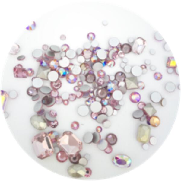 Mix kövek light pink (világos rózsaszín) kivitelben. Egy csomag összesen 212 db, különböző méretű és formájú ólom kristály strasszkövet tartalmaz. Megtalálod benne az egész nagy, nyolcszög alakú kristályokat, de kisebb rombuszok és kör alakú strasszkövek is vannak a csomagban. Kiváló választás teli köves körmökhöz, vagy absztrakt kőelrendezéshez. Rögzítés glu