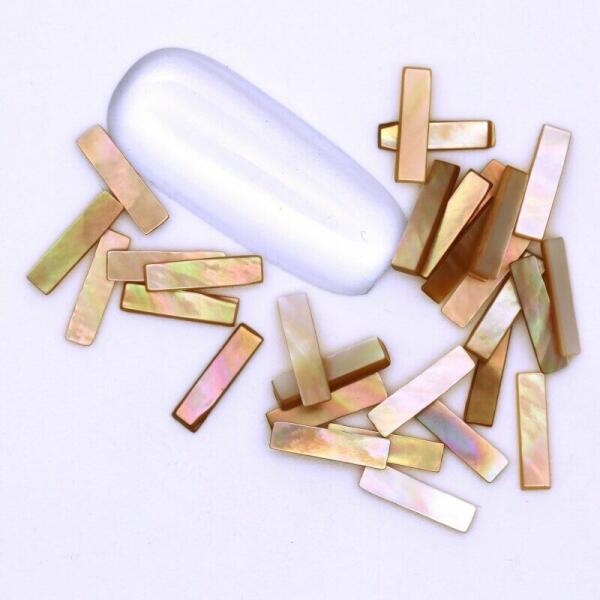 Kagyló körömdísz, hasáb formájú tengeri kagylódarabok. Minden darab eltérő mintázatú, egyedi, különleges körömdísz rózsaszínes árnyalattal.