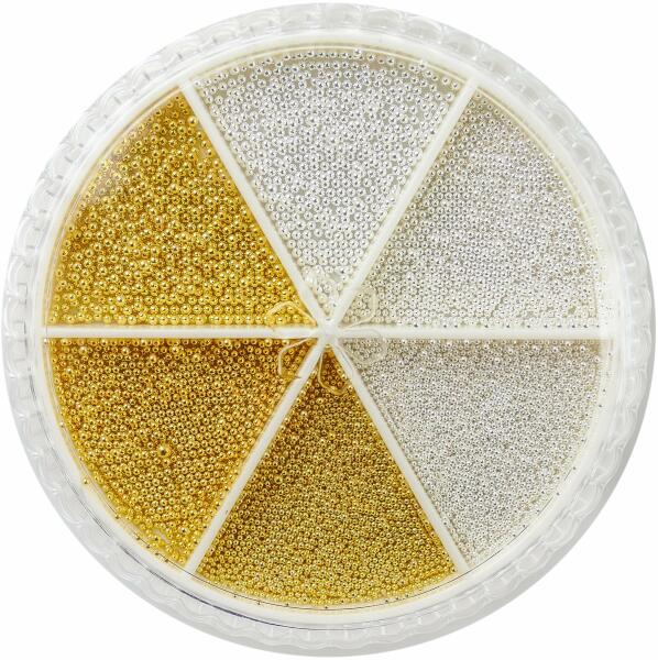 Díszítsd manikűrödet egyedi NANI kaviár körömdísszel – 0,6/0,8 és 1 mm méretű, ezüst és arany színben. elegáns kerek körömdísztartóban zselés és porcelán alapra is használható ezüst és arany