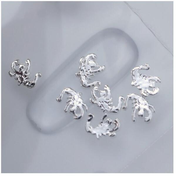 Körömdekoráció skorpió formában fényes ezüst színben. Glue gél segítségével könnyen és tartósan a körömre rögzíthető. Kiválóan kombinálható strasszköveinkkel és különleges körömdíszeinkkel.