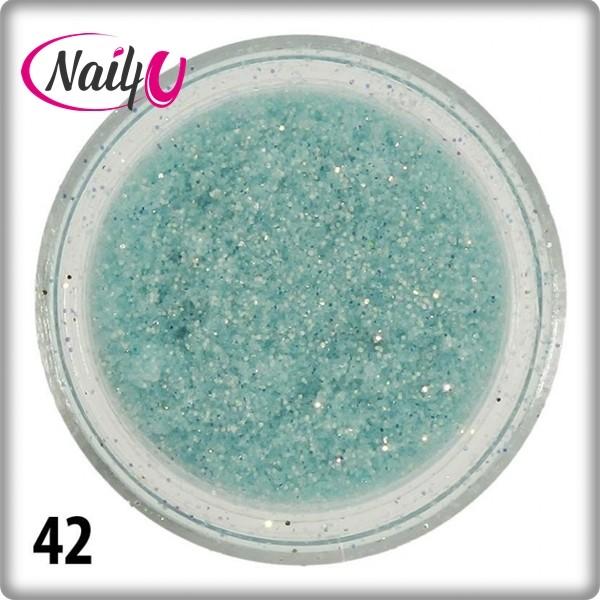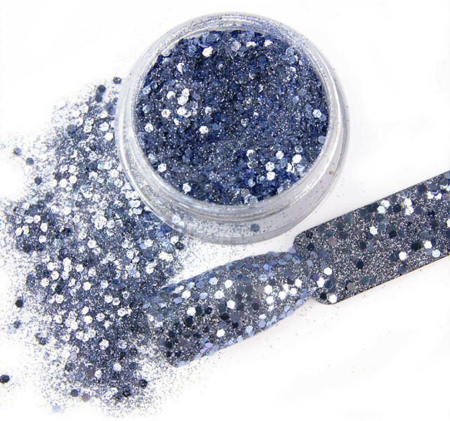 Csillámpor 42. , babakék színben. A körömdíszek között a leginkább népszerű körömdíszítő anyag. Töretlen népszerűsége a kedvező ár mellett, a széleskörű felhasználhatóságnak is köszönhető. Használhatjuk szinte bármilyen körmön. Tehetjük felületre, beépíthetjük, vagy akár az építő anyaghoz is keverhetjük. A végeredmény; káprázatos csillogás, egyszer
