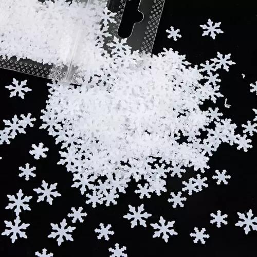 Körömdí szítő flitter karácsony hópihe irizáló fehér színbenműanyag tasakban (10*10*1cm)