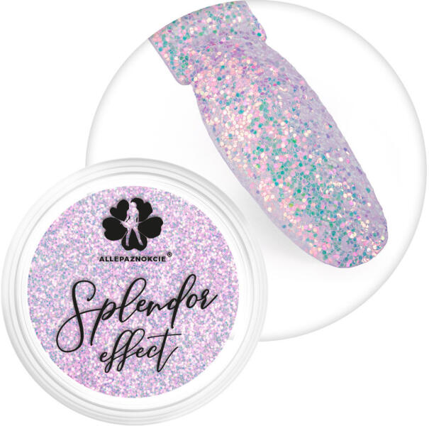A Splendor effect 04# egy pasztell árnyalatú por, jól láthatóan irizáló részecskékkel. A rózsaszínen csillogó és minden napsugarat visszaverő kristályos ragyogás nem enged közömbösen elhaladni mellette! Tökéletes színes, egyedi stílusok létrehozásához és a klasszikus, gyönyörű színek valódi műalkotássá alakításához. Használd kiegészítő díszítésként vag