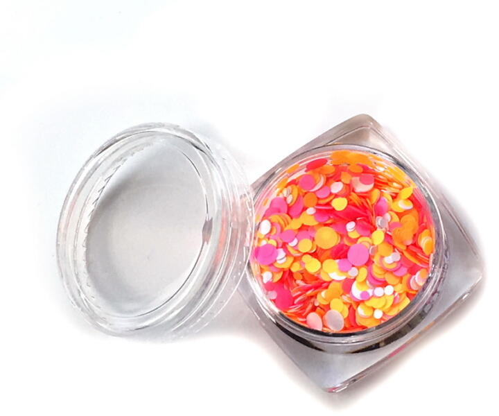 Termékeink különböző méretű és színű konfetti szemcséket tartalmaznak, melyekkel könnyedén díszítheted körömlakkozott, vagy gél lakkozott körmeidet, de műkörömbe is beépítheted őket.