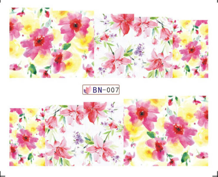 BN-007 akril (vizes) matrica felhelyezése: vágd ki a kiválasztott mintát, majd távolítsd el róla a védőfóliát. Mártsd vízbe a matricát, majd itasd le róla a felesleges nedvességet. Óvatosan csúsztasd le az alapról a matricát az ujjbegyed segítségével. Ezt végezheted közvetlenül a körömfelület fölött, így már egyből helyezheted is fel a kijelölt mintát. Törekedj
