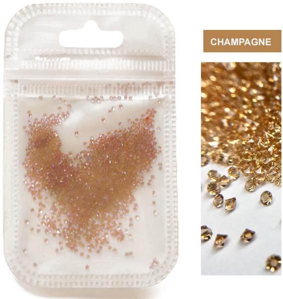 1440 db 1-3 as méretű üveg strasszkő. Körömfelületre ragasztóra, vagy ragacsosra kötő fényzselébe szórjuk.