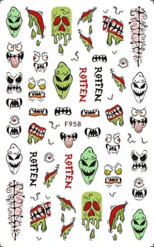 3D-s körömdíszítő tökfejek és koponyák a Halloween hangulatához.