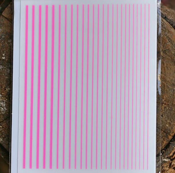 Körömmatrica neon pink színben, ragasztható, különböző vastagságú díszítő csíkok. Egyszerűen használható körömdíszítő mely kiválóan kombinálható neon színű strasszköveinkkel és neon üveg cseppformáinkkal.