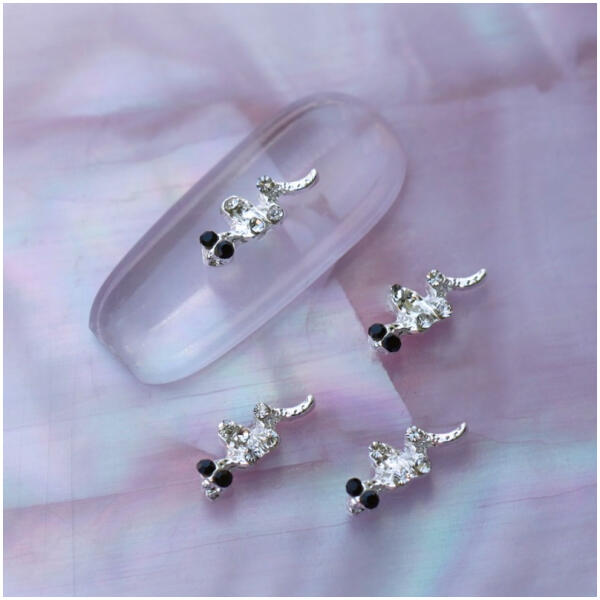 Strasszköves körömdísz, ezüst színű kígyó forma, jet színű szemekkel. Egyedi körömdíszítő, kreatívan kombinálható különleges színvilágú strasszköveinkkel, szórógyöngyeinkkel. Glue gél segítségével tartósan a körömfelületre rögzíthető.