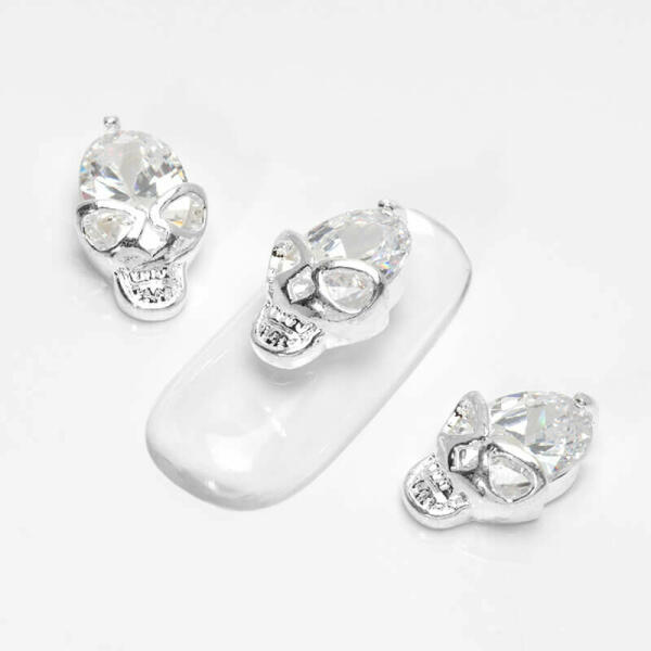 Cirkóniaköves körömékszer, nagy, 12mm-es cirkónia kristállyal díszített koponyafej.