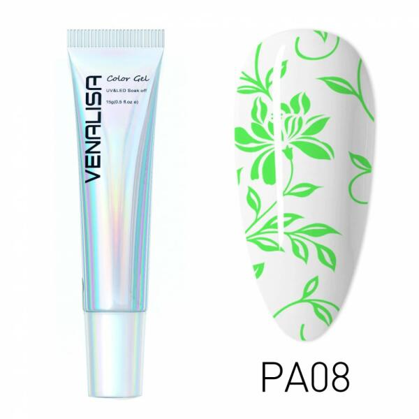 Egy magas pigmenttartalmú festőzselé, amellyel rendkívűl hatékony a munkavégzés, valamint kiváló eredményeket érhetünk el használatával. Rendkívül precíz munkavégzést tesz lehetővé számunkra mivel nagyon vékony vonalakat is tudunk vele húzni, amely a magas pigmenttartalmának köszönhető. Kötési ideje: UV lámpában 3-4 perc, LED lámpában 2perc. Kiszerelés: 15gr.