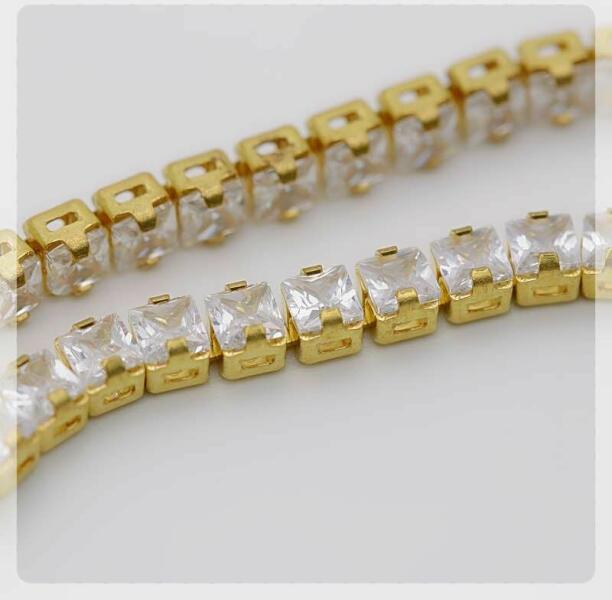 Cirkóniaköves lánc extrém díszítésekhez. Arany színű aluninium foglalatban ezüst színű cirkónia kövek. A lánc hossza 6 cm. A cirkónia kövek 3*4mm szélességűek és 3mm magasságúak.