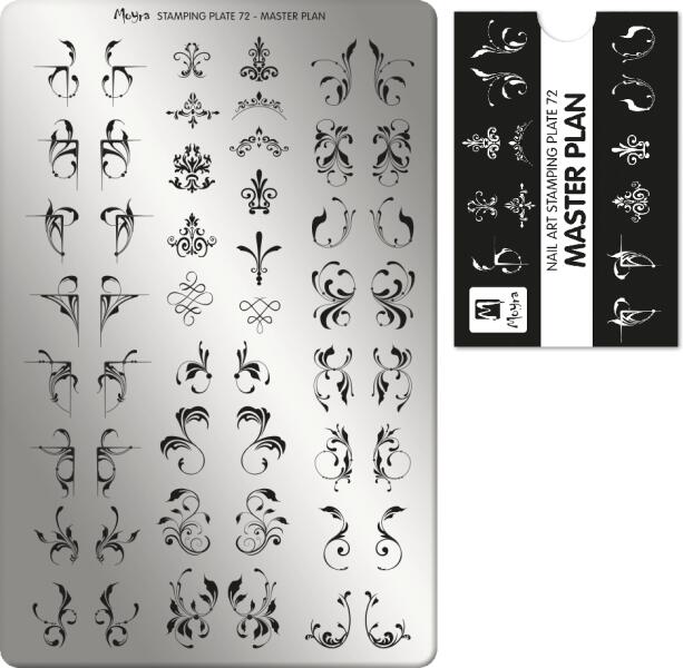 A Moyra No. 72 MASTER PLAN körömnyomda lemez egy sokoldalúan használható lemez. Motívumait használhatod hagyományos módon nyomdalakkal, de ha szívesen kísérleteznél akkor próbáld ki Fólia nyomdalakkal, Nyomda lakkzselével is, mert rendkívül dekoratívak effekt porral, körömfóliával fedve! Továbbá ez a lemez nagy segítségedre lehet akkor, ha a tetszőlegesen kiválasztott