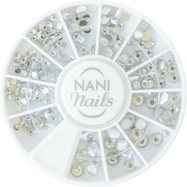 Díszítsd manikűrödet egyedi NANI körömdíszekkel – különböző minták többféle méretben és színben. elegáns kerek körömdísztartóban UV zselés és porcelán alapra is használható ezüst