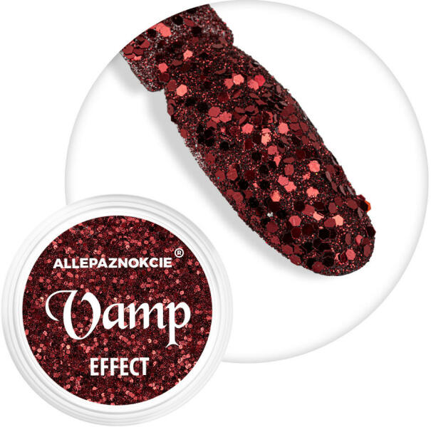 A Vamp Effect Nr. 5 egy nagy adag szexuális vonzerő, érzékiség és titokzatosság egyetlen kis tégelyben. Ez a szín egy igazi Diva. A vörös és az arany kombinációja tökéletes a bátor, de bizonytalan nők számára. Tökéletes kiegészítője lesz az arany, bézs vagy vörös körmöknek. A férfiak által vágyott, a nők által gyűlölt vámpírnő szexuális vonzerővel és női