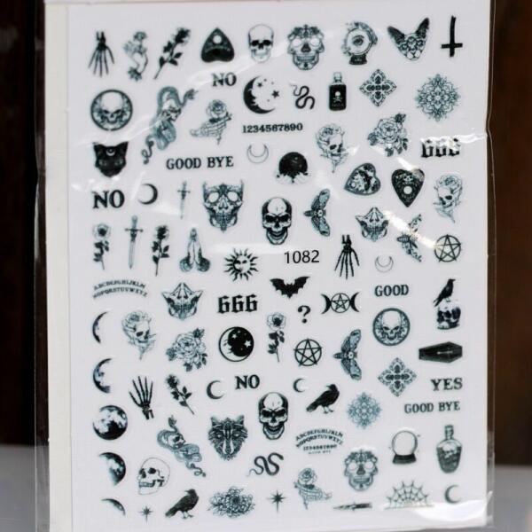 Körömmatrica Halloween ünnepi mintákkal 3D-s kivitelben. Színes körömminták a praktikus, egyszerű körömdíszítésért. Ragasztó réteggel ellátott matrica, önmagában is kitűnő dekoráció.