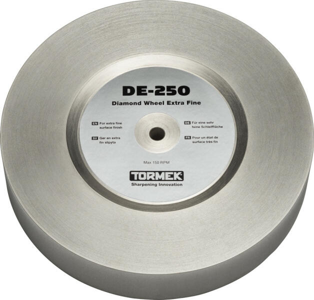 A Tormek extra finom gyémánt korong 1200 grit finomsága szép felületet készít és különösen hatékony faragó szerszámok és faragó kések élezéseker, mert csak minimális acélt távolít el. Minden anyag élezéséhez, beleértve az acélt, kerámiát és karbidokat is. Tormek T-8, T-8 CUSTOM, T-7, és minden olyan korábbi Tormek modellre, amik 250 mm-es köszörűkővel működne