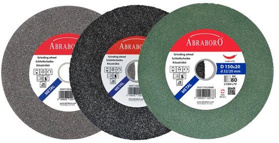 Abraboro Kerámiakötésű köszörűkorong Asztali/állványos köszörűgéphez, különböző szemcsefinomsággal, alumínium-oxid (A) ill. szilícium-karbid (C) szemcsével Szűkítőgyűrűvel szállítjuk Törésre, ütésre érzékeny, kémiai hatásnak ellenálló szerszám Színe: zöld (szilícium-karbid szemcse)-C80 szemcseméret Ajánlott (C): keményfémhez, színes és könnyűfémhe